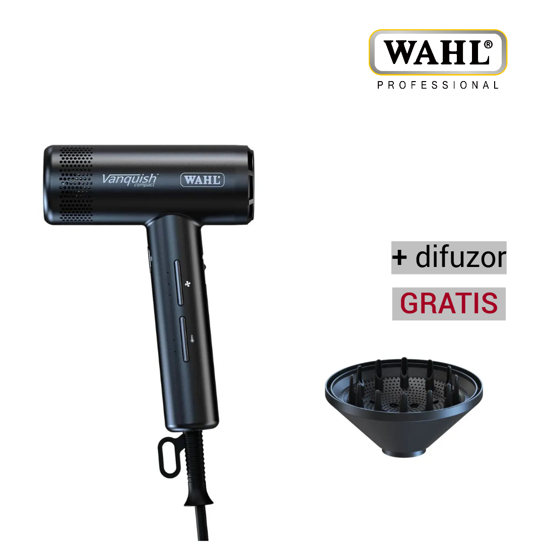 Wahl Vanquish® Compact postavlja novi standard u sušenju kose. Izuzetno kompaktan i lagan, dizajniran je za maksimalnu udobnost pri korištenju, dok istovremeno pruža profesionalne rezultate zahvaljujući snažnom i preciznom protoku zraka.